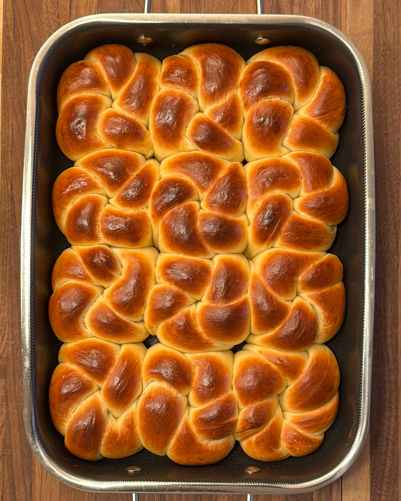 Once the knots are ready, pull them out of the oven and immediately brush with the topping mix.